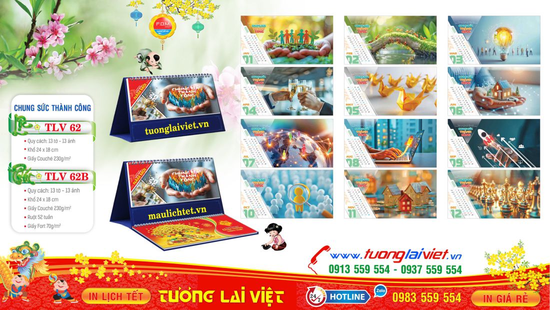 Mẫu Lịch Bàn 13 Tờ Chung Sức Thành Công