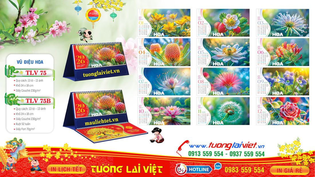 In Lịch Tết TLV gởi đến quý khách hàng Mẫu Lịch Để Bàn 13 Tờ và Bảng báo giá In Lịch Để Bàn, Quý khách dễ dàng lựa chọn theo từng số lượng in ấn lịch tết phù hợp theo nhu cầu của doanh nghiệp.